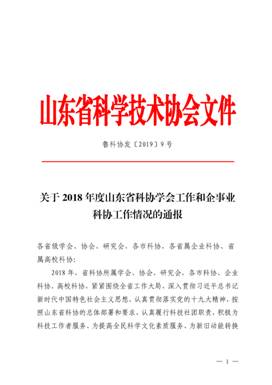 我院科协被评为山东省2018年度企事业科协工作先进单位