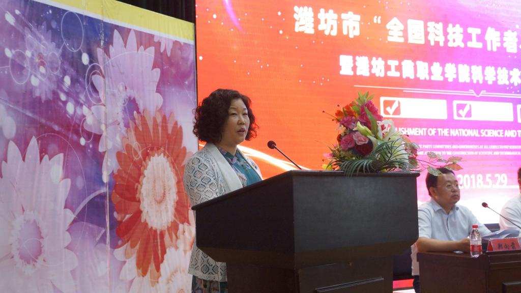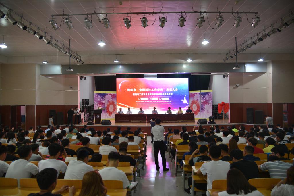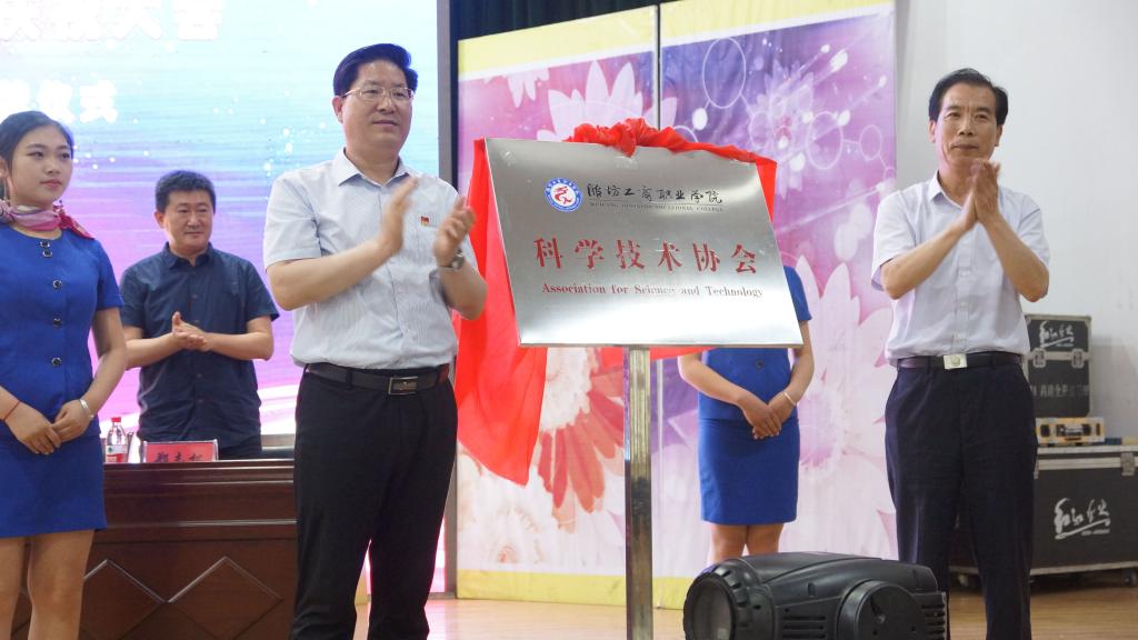 热烈祝贺“潍坊市‘全国科技工作者日’庆祝大会暨潍坊工商职业学院科学技术协会揭牌仪式”在我院胜利召开