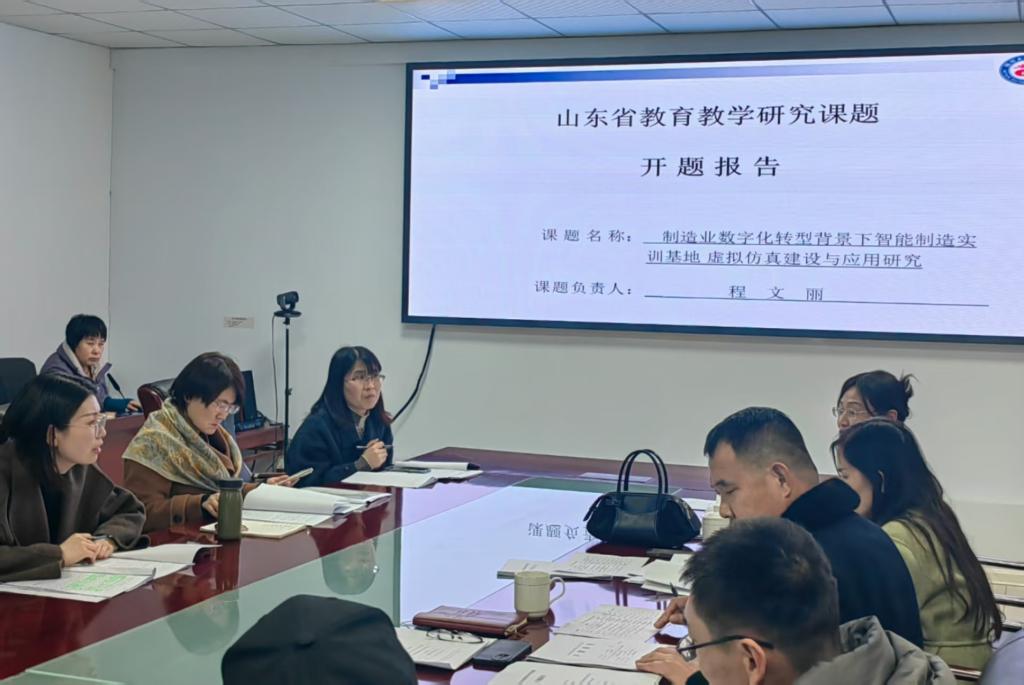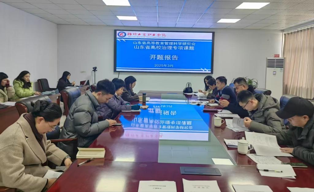 近日,潍坊工商职业学院科研处组织召开2025年上半年在研课题课题开题报告会,学校总督学陈海龙、科研处副处长王东娟、校内外5位评审专家及各课题组参加了开题报告会。会议由副校长郭素森主持。